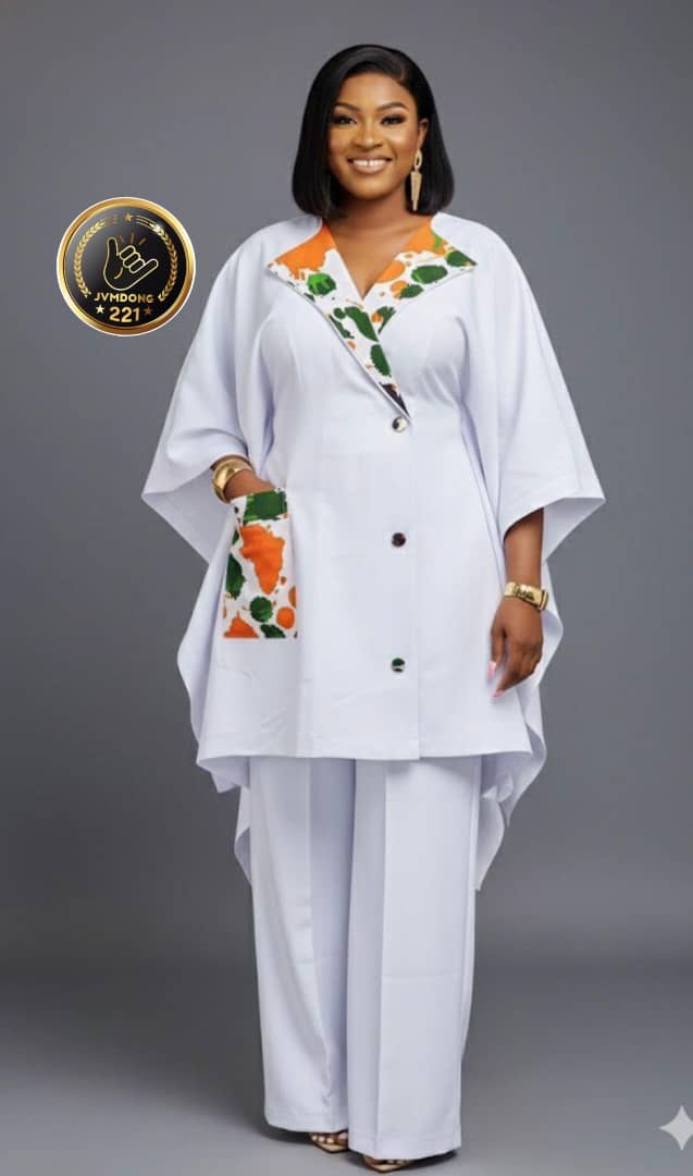 Sublimez votre style avec cet ensemble deux pièces alliant élégance contemporaine et touche africaine raffinée.