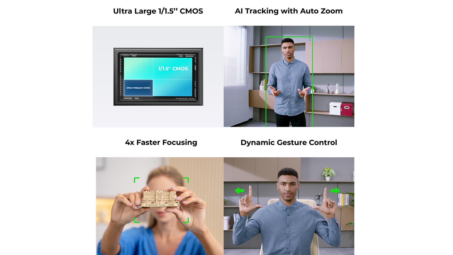 | Fonctionnalité | Commande gestuelle, commande vocale, OBSBOT Centre (anciennement OBSBOT caméra) |